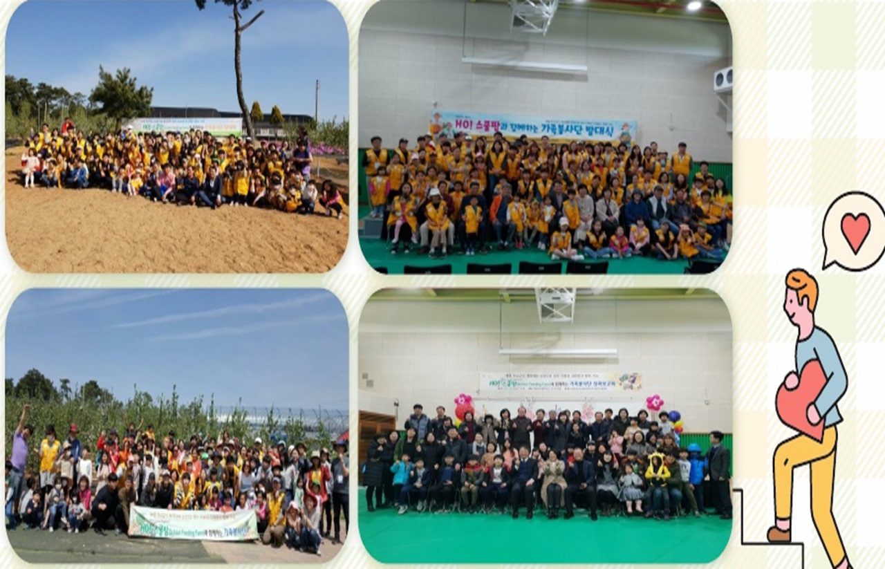 HO-스쿨팜 가족봉사단은 어린이집, 유,초,중, 고등학교 급식인 공공급식으로 공급되는 친환경 농산물을 재배하고 있는 농장에 인력이 부족한 시기에 게릴라 형식으로 우루루 총집합하여 농촌의 부족한 일손을 돕는 가족봉사단입니다. 단원들은 급식을 이용하는 어린이가 있는 가족부터 일손을 돕고 농촌의 문화를 이해하고 싶은 외국인주민들로 구성되어 다문화가 모이는 봉사단입니다.