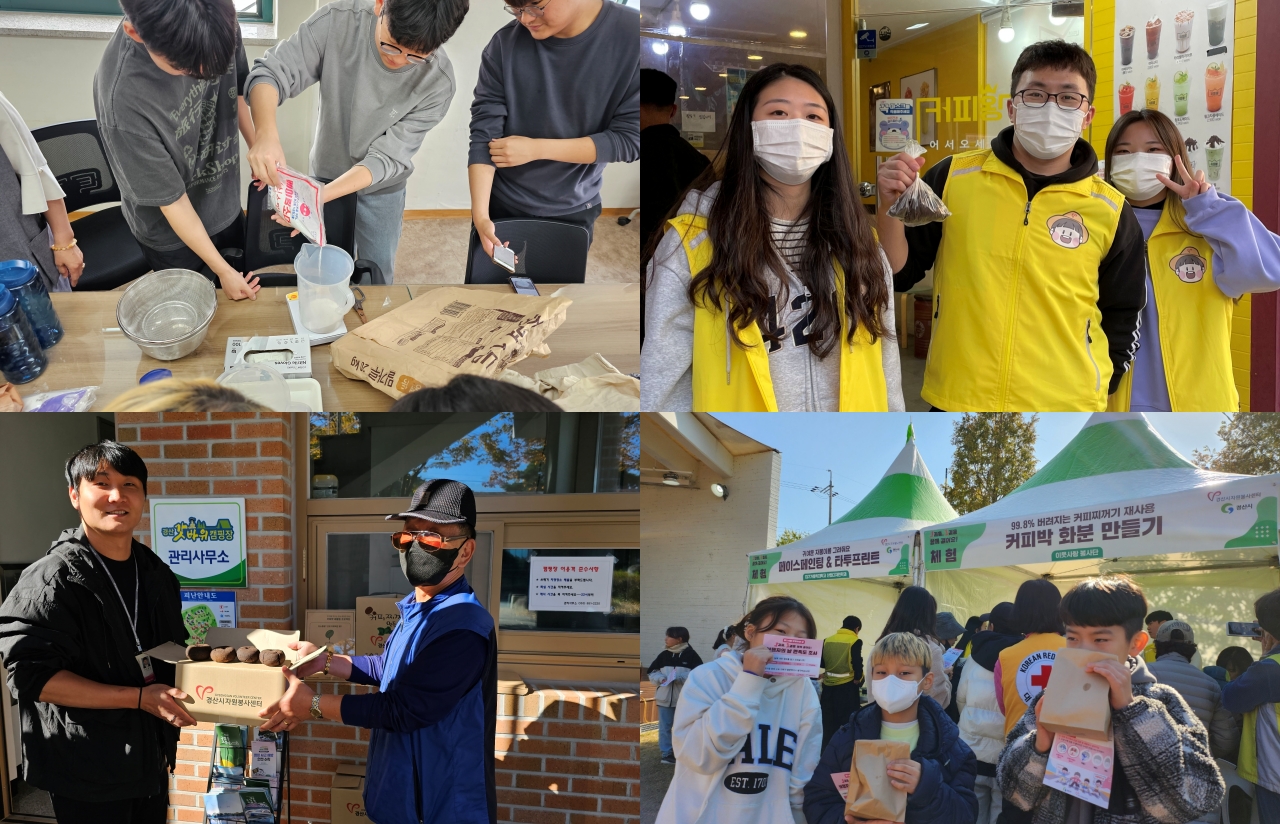 더불어 지역 대학생과 함께 제작한 커피박 고체연료를 지역사회 내 재사용을 통한 자원 선순환을 위해 경산시청 관광문화과와 연계해 경산시에서 운영하는 갓바위 캠핑장에 전달하기도 했습니다.