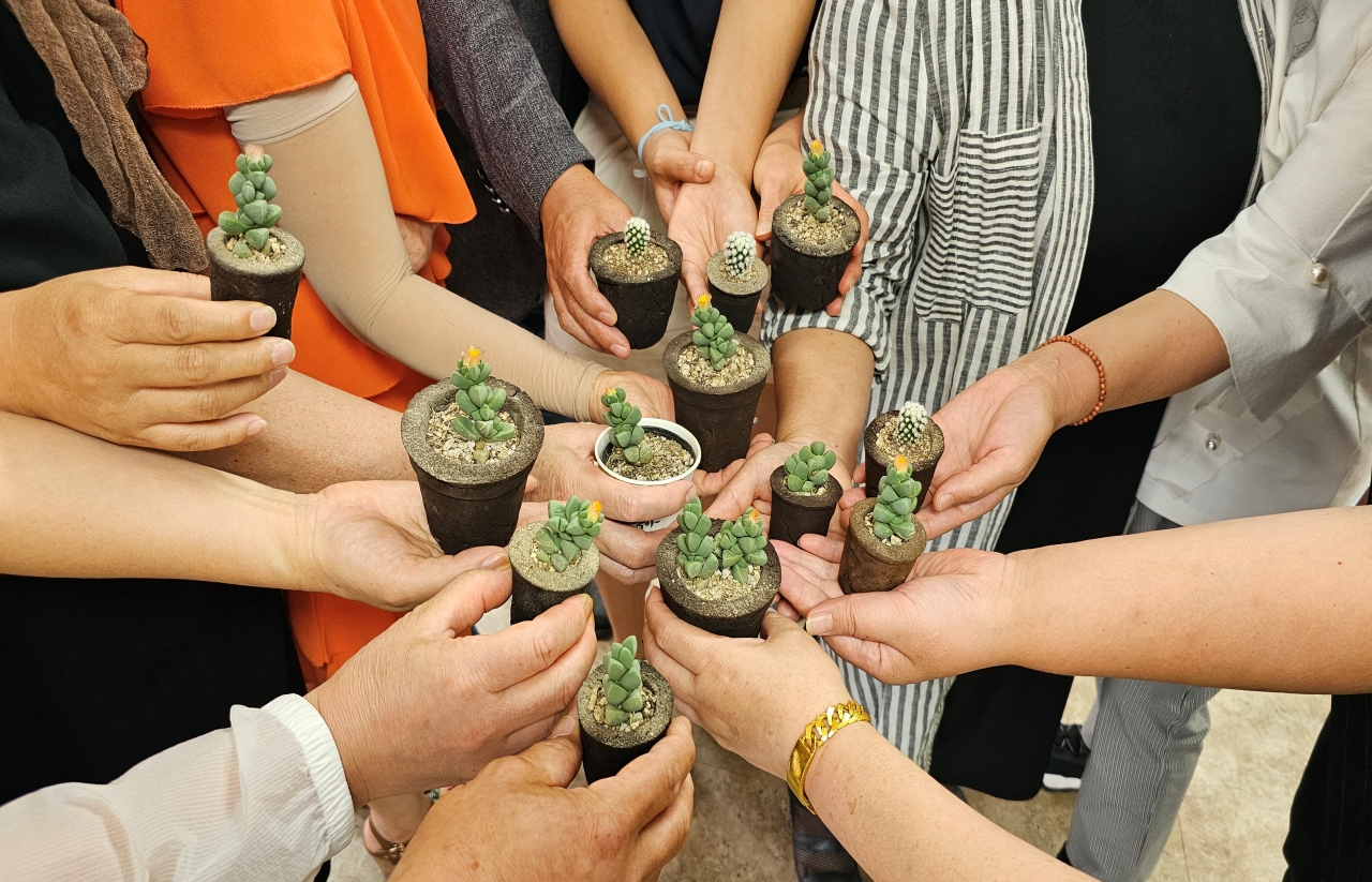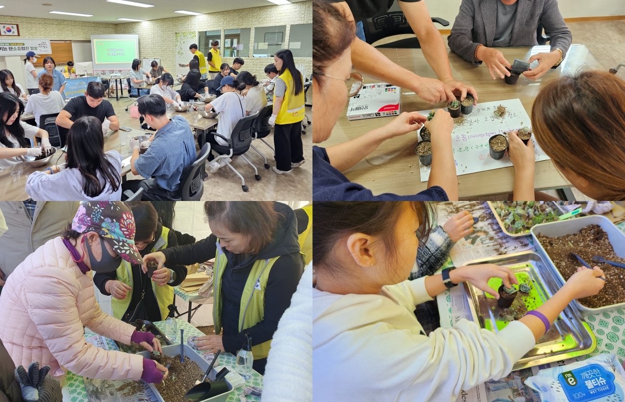 새활용으로 탄생한 커피박화분은 지역 자원봉사단체 간담회 진행시에 다육이화분 만들기 프로그램을 통해 지역사회에 전달되어 졌습니다.