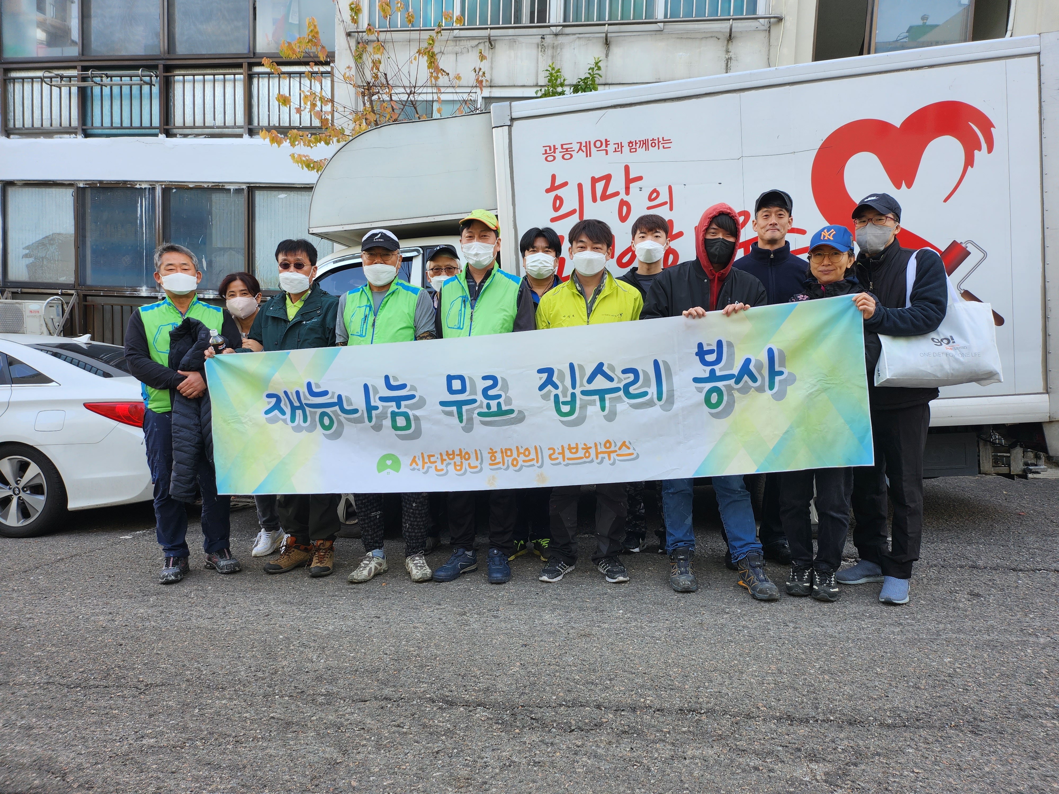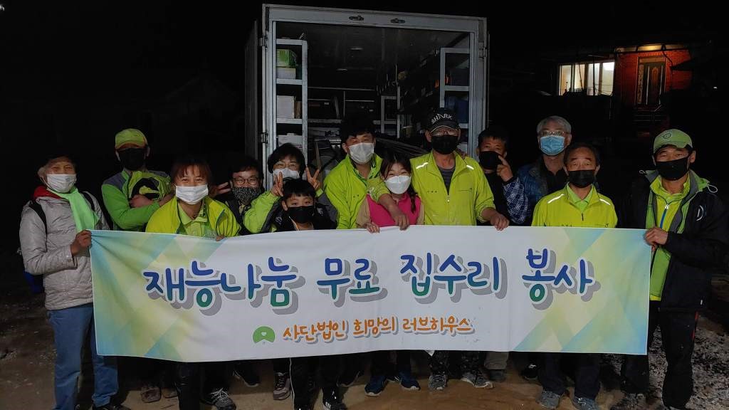 “희망의러브하우스”는 20년차 집수리 전문 봉사단체로서 단열공사는 물론이고 고기능성 창호/도어 교체, LED전등 교체, 아궁이 부엌을 씽크대 부엌으로 신설, 재래식 화장실을 신식 화장실로 신축공사까지 완벽한 주거개선이 가능합니다. 집수리 봉사활동 완료 이후에도 사례관리를 지속하며 온수매트/식품/필수물품이나 난방비/연료 지원 등을 후원하며 사후관리까지 진행하고 있습니다.