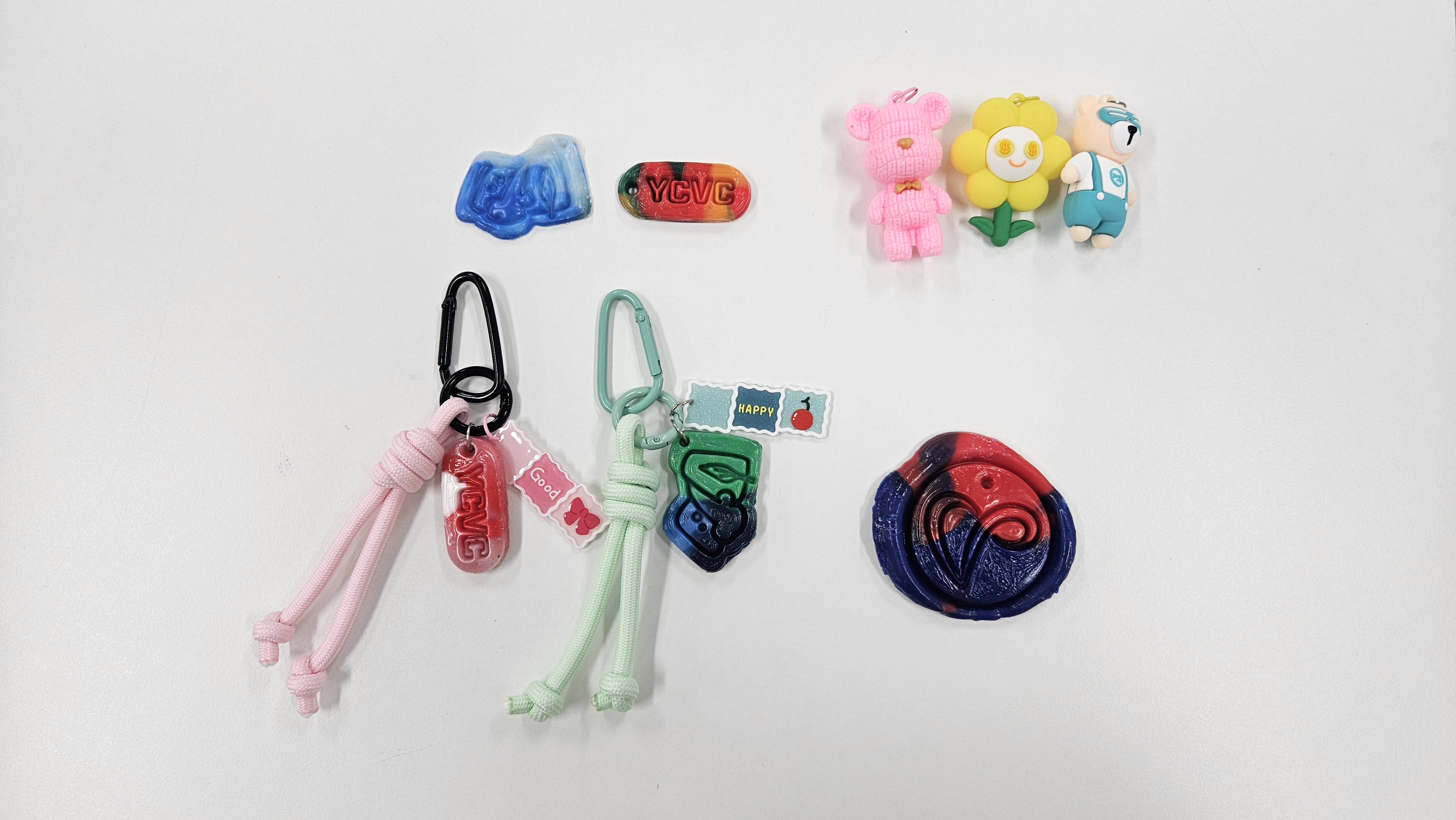 - 키링은 플라스틱 뚜껑에 열에 가열하여 녹여 주물도장으로 찍어내는 과정으로 만들어 진다. 연천군자원봉사센터에서는 자원봉사센터 대표 마크인 V로고와 연천군자원봉사센터 영문약자, 그리고 연천군 대표 관광지인 재인폭포 주물도장을 제작하여 키링을 만들면서 자원봉사센터와 지역 명소를 알리는데 노력하고 있다.