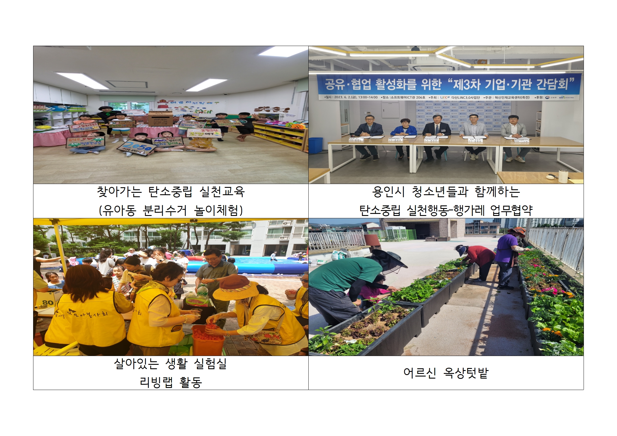 다섯째로, 어르신 대상으로 1·3세대 통합 옥상 텃밭 운영을 위하여 용인 관내 어린이집과 사전 기획회의를 추진하여 1세대인 유아동 친구들과 3세대인 어르신들이 세대 공감할수 있게 손잡고 옥상 텃밭을 함께 조성하고 1년간 관리하였습니다.
