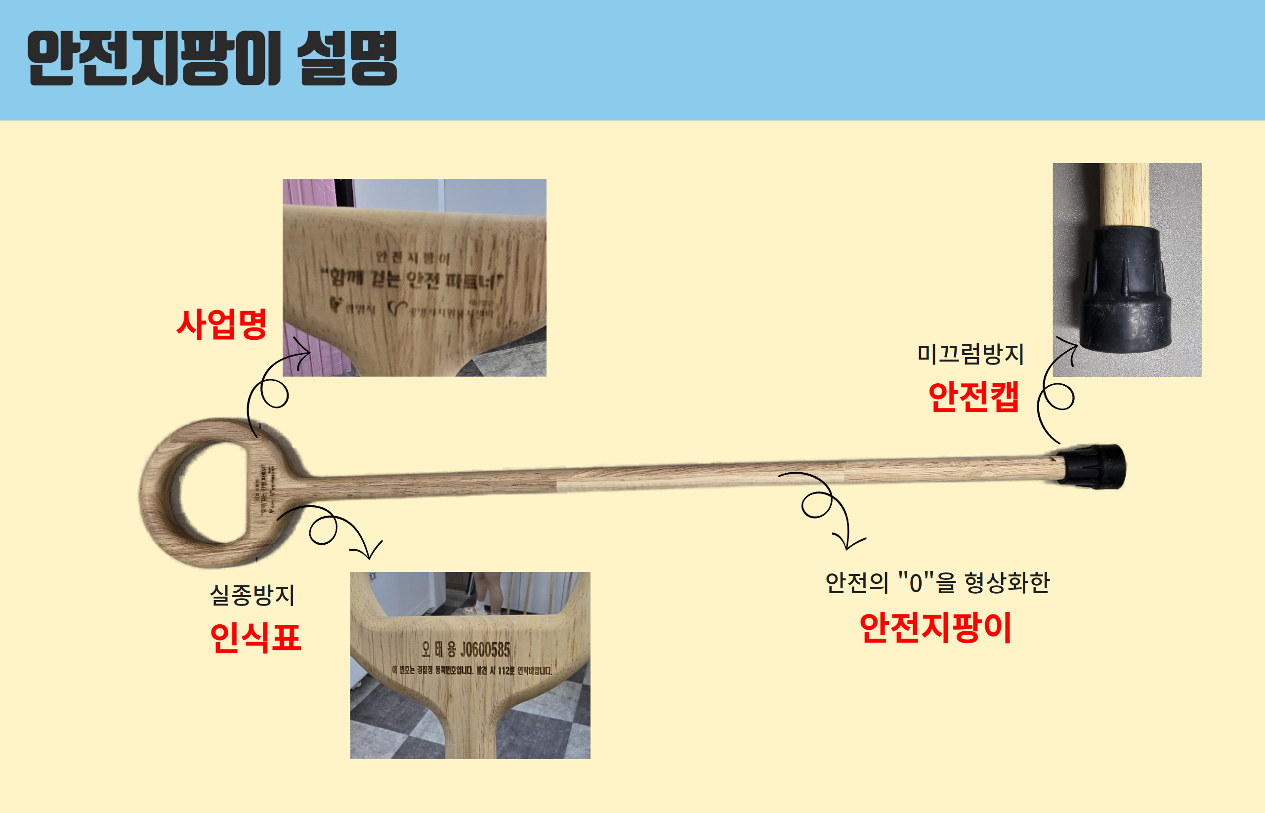 이 지팡이는 버려지는 자투리 목재를 활용하여 제작되었으며, '배회 어르신 인식표'를 각인함으로써 “탄소중립도시 광명시”와 “국제안전도시 광명시”를 대표하는 의미 있는 사업으로 자리매김하고 있습니다.