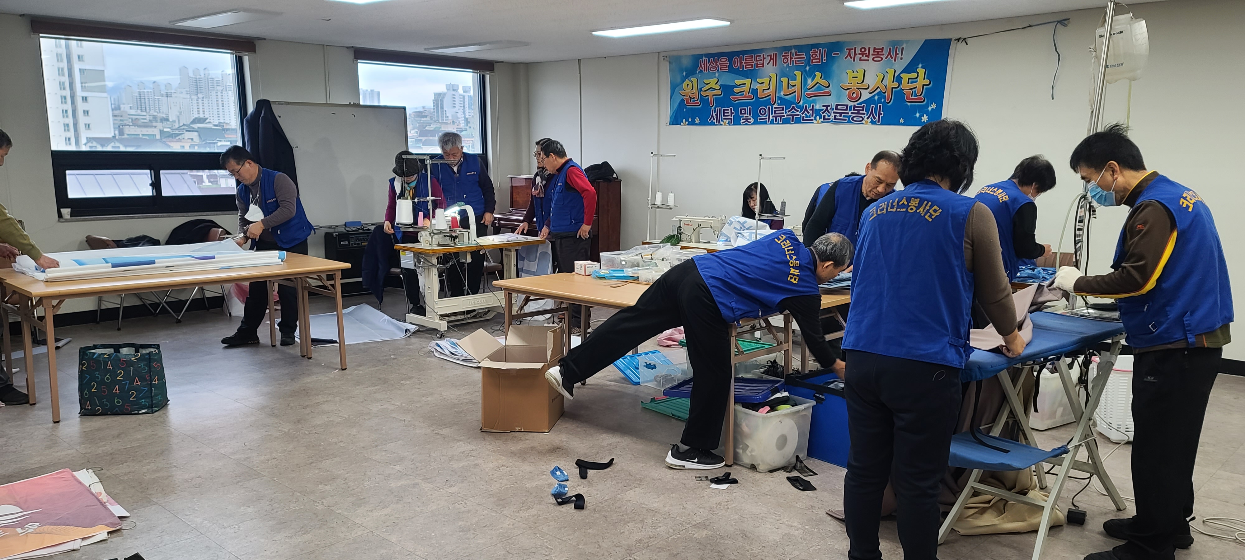 -부대 제작과 더불어, 사회복지시설에서 수선이 필요한 옷을 접수 받아 수선해 주는 의류 수선 전문봉사활동도 병행하여 실시