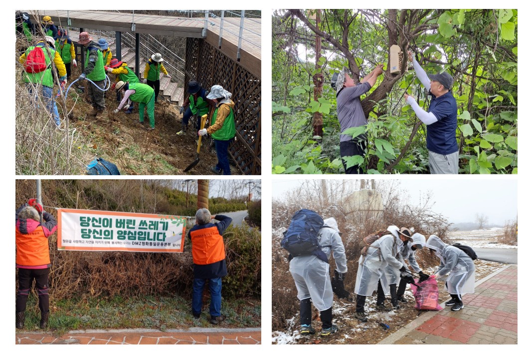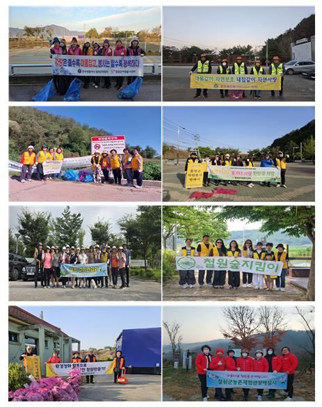 정기적인 환경정화활동과 모니터링에 있어서는 철원군관광기획개발실과 협업하여, 구간별 청소도구함을 제작하여 비품을 넣어두어 활동을 할 수 있도록 지원을 받았으며 모니터링을 공유하여 군에서도 즉각적으로 처리할 수 있게 함. 또한 곤충아파트 제작과 관련하여 구간별 설치하여 유지 될 수 있도록 하였으며 한국농어촌공사철원지사와는 수로에 생태사다리 제작 시 협조를 구하여 훼손되지 않도록 하였으며 [함께해요! 실천운동] 캠페인을 기획, 군과 협력하여 관광객들이 많은 곳에 본인의 쓰레기를 담고 후에 재사용할수 있는 시장바구니를 배부하는 등 관공서 및 관내 기관들과의 협업 활동으로 함께 동참할 수 있게 하고있으며 참여 단체회원들 중 6명을 선정, 소정의 교육을 받고 원주지방환경청장 명의의 명예환경감시원증을 부여받아 무분별하게 쓰레기를 버리는 사람들을 계도 할 수 있도록 함으로써 환경감시자의 역할에 힘을 실어드리고 있음.