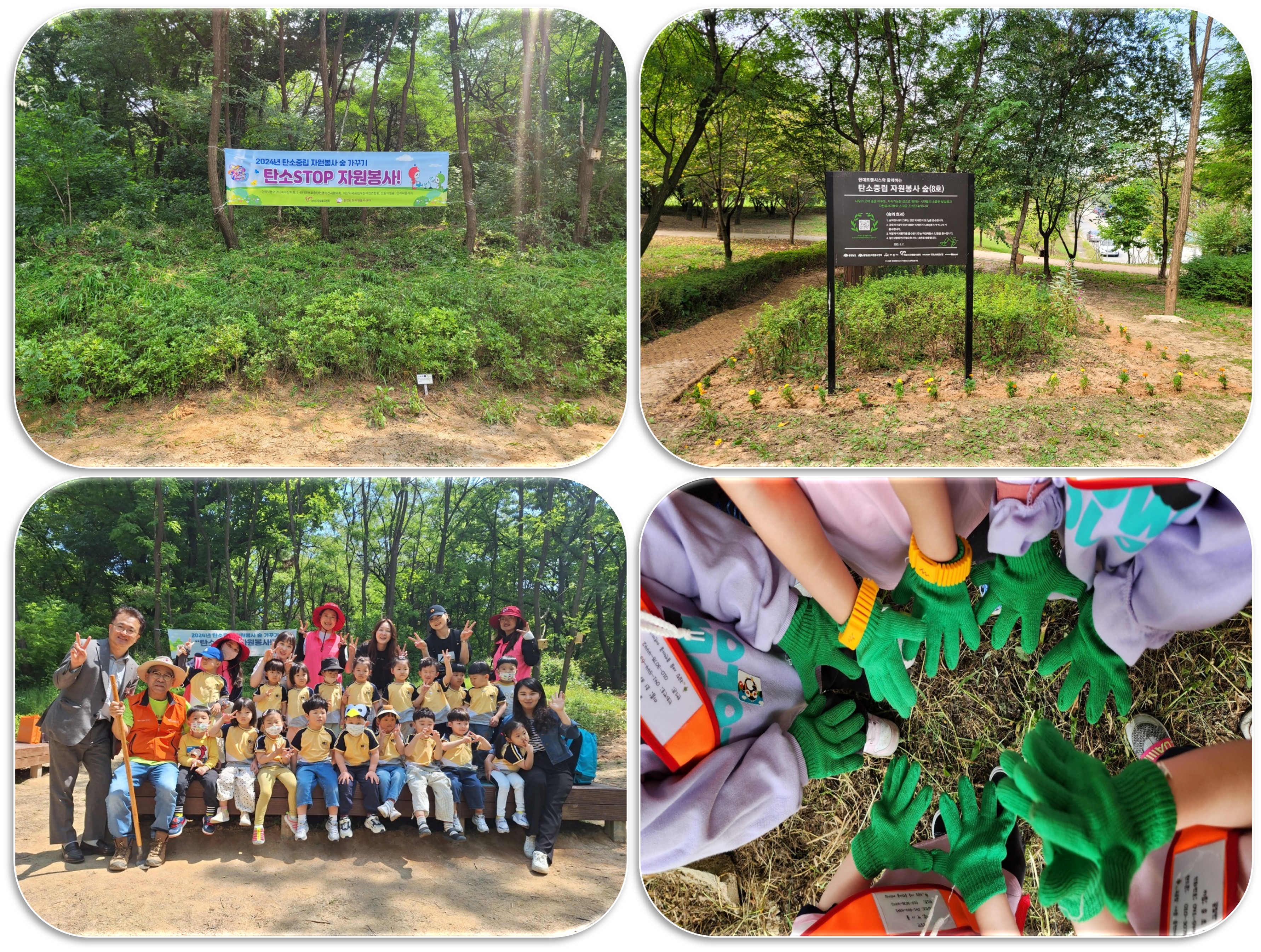 아산시자원봉사센터는 충청남도자원봉사센터의 ‘탄소중립 자원봉사 숲’ 조성 사업에 발맞춰 2021년부터 8호 숲을 조성하고, 2024년에는 이를 더욱 발전시켜 「탄소Stop! 자원봉사」 사업을 추진했습니다. 특히, 국공립어린이집 연합회와의 협력을 통해 미래 세대에게 탄소중립의 중요성을 알리고, 실천을 위한 다양한 활동을 전개했습니다.