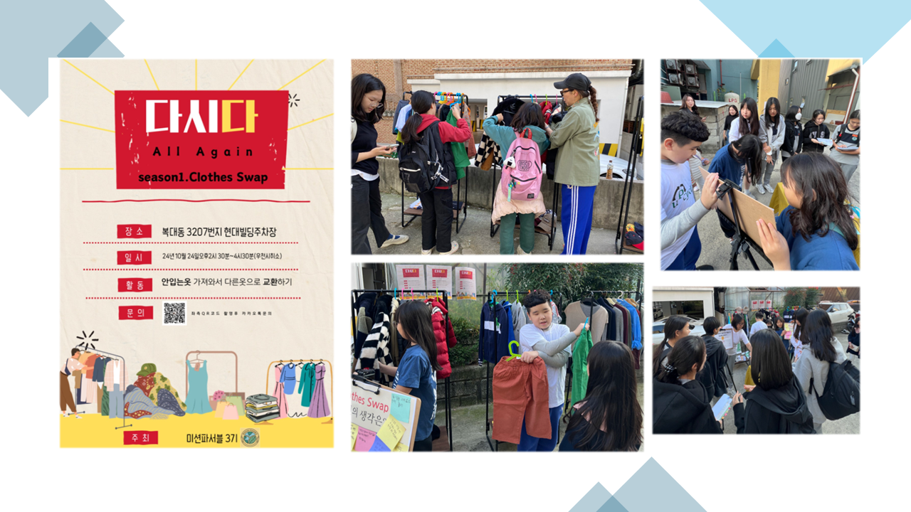 이번에 진행한 옷 바꿔입기 캠페인을 통해 내가 더 이상 입지 않는 옷들이 다른 사람들에게 새로운 옷처럼 환영받는 걸 보면서 작은 실천이 우리에게도, 지구에도 긍정적인 영향을 줄 수 있다는 생각이 들었습니다. 단순히 옷을 나눈 것이 아니라 환경 보호에 동참한다는 생각에 뿌듯하기도 했습니다.