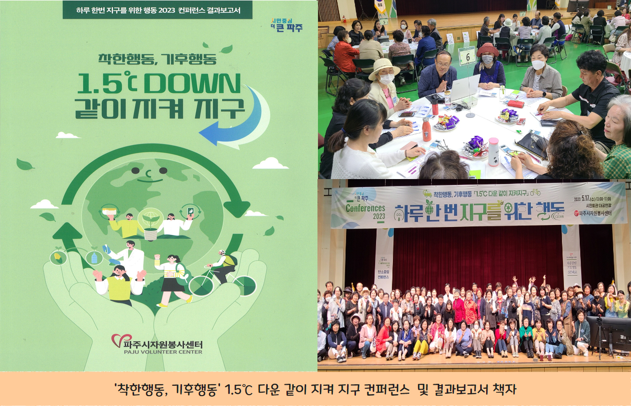 파주시자원봉사센터는 ‘착한행동, 기후행동 1.5℃ 다운 같이 지켜 지구’ 컨퍼런스를 시작으로, 우리가 일상에서 하루 한번 지구를 ...