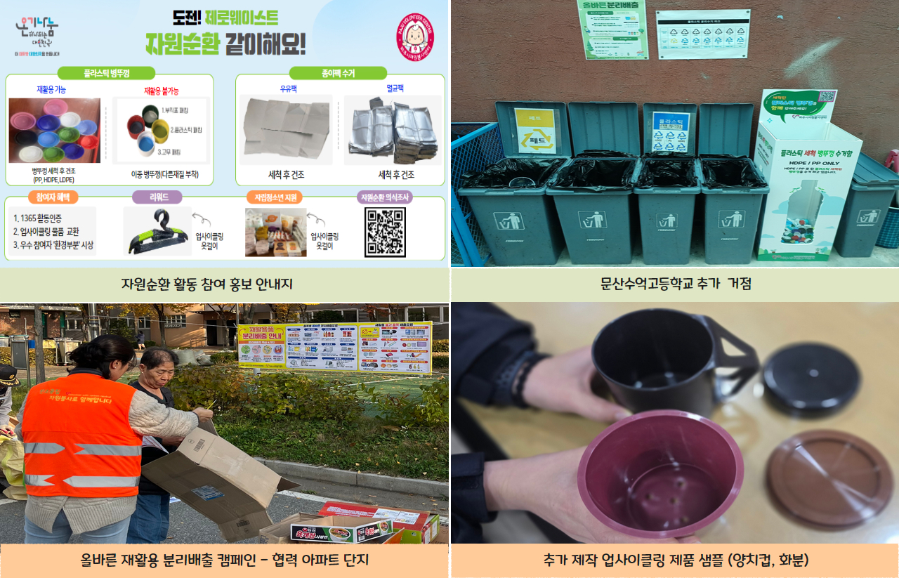 ○ 활동 시작 전 올바른 재활용 분리배출 환경교육이 필요하며, 거점 장소를 확대하여 보다 많은 시민들이 쉽게 참여할 수 있도록 노력할 것입니다,