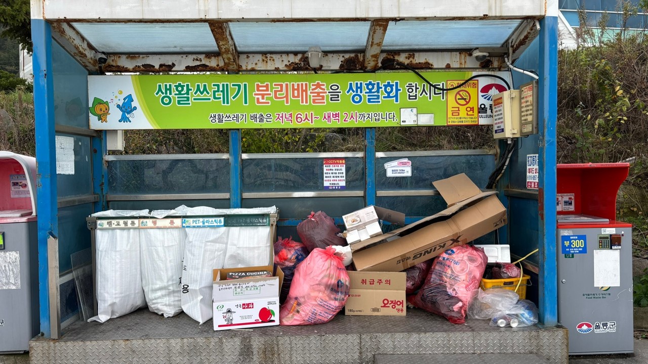3) 주민의 적은 참여가 우려되어 울릉도 내 모든 분리수거장 내 자원순환지도 QR코드와 문구가 들어간 스티커 부착하였습니다.