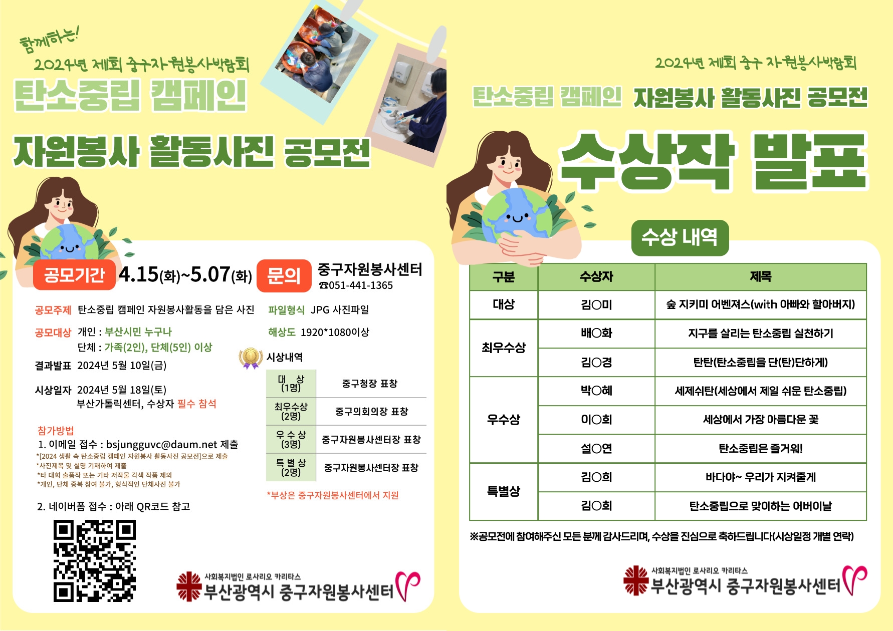 생활 속 탄소중립 캠페인 참여를 통해 우리는 지구와 함께하고 있으며, 소중한 자연에게 많은 도움을 받고 있다는 것을 다시 한번 기억하고 일상에서 꾸준히 실천해 주셨으면 좋겠습니다. 귀찮음에 굴복하면, 더 불편한 일이 생길 수도 있기에 부산광역시 중구자원봉사센터는 봉사자들과 함께 지구와의 동행을 쭉~ 이어갑니다. 고맙습니다.