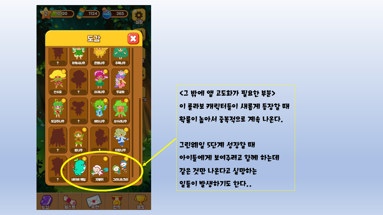위 언급한 대로 캠페인 활동간 가장 문제점으로 두드러졌던 초등학생 아이들의 PC사용에 대한 장벽이다. 누구나 정말 어디서나 쉽게 활용할 수 있는 방안으로 늘 손에 쥐고 있는 스마트폰에서의 그린웨일 앱 개발이 필요할 것이다.