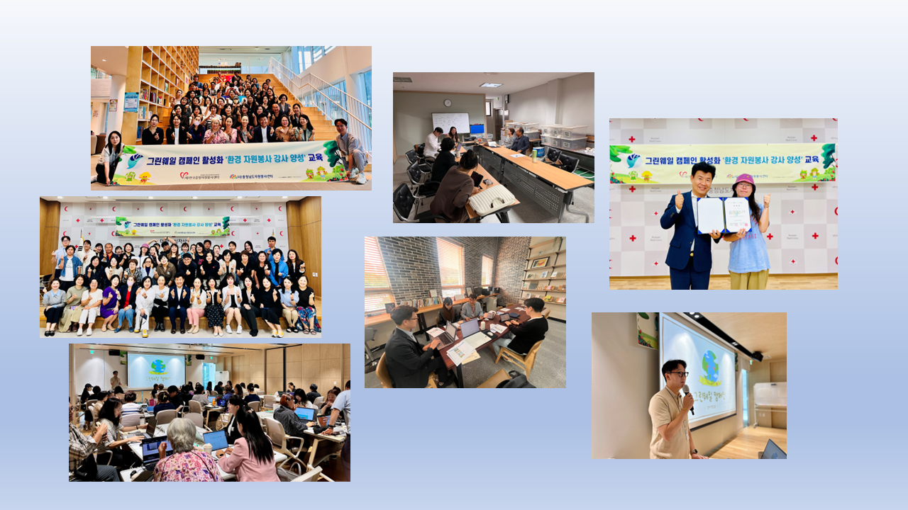 충남교육청은 연계사업에 대해 긍정적으로 응답했고, 참여할 학교를 섭외하고 필요한 예산 등을 확보했습니다. 저희 충청남도자원봉사센터는 그린웨일 캠페인 운영을 위한 강사양성에 도입했습니다.