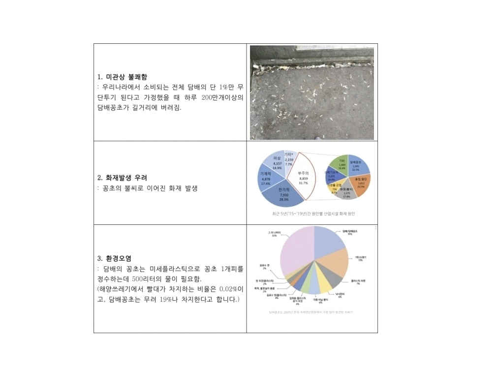 매일 수없이 버려지는 꽁초쓰레기 문제는 줍는 것만으로 해결되기 어렵겠구나 라는 문제 의식을 가지게 되었습니다.
