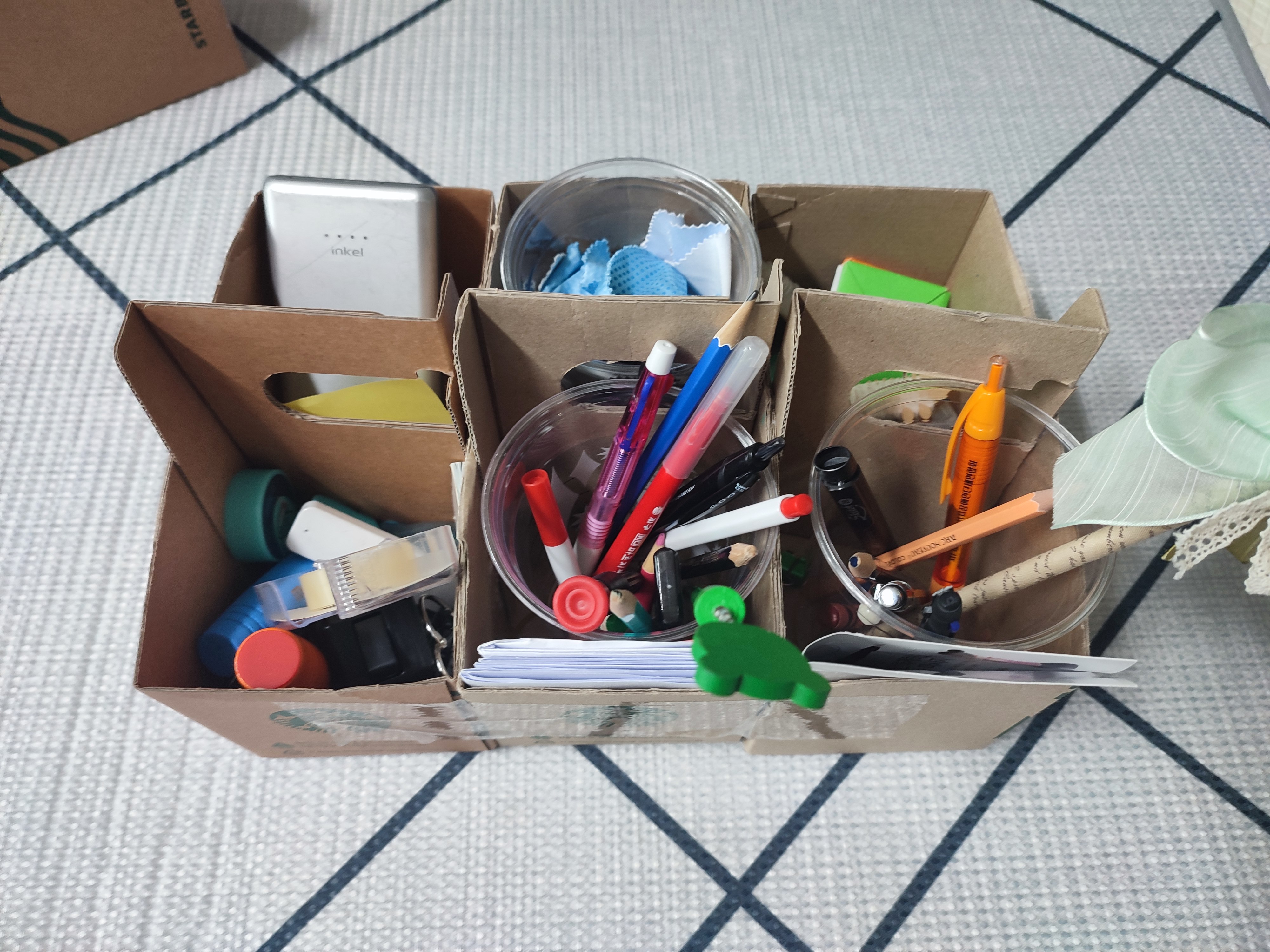 손잡이 부분을 다시 활용하여 칸막이로 활용하면 분류별로 분리가능한 훌륭한 열필꽂이로 탈바꿈할수 있습니다.