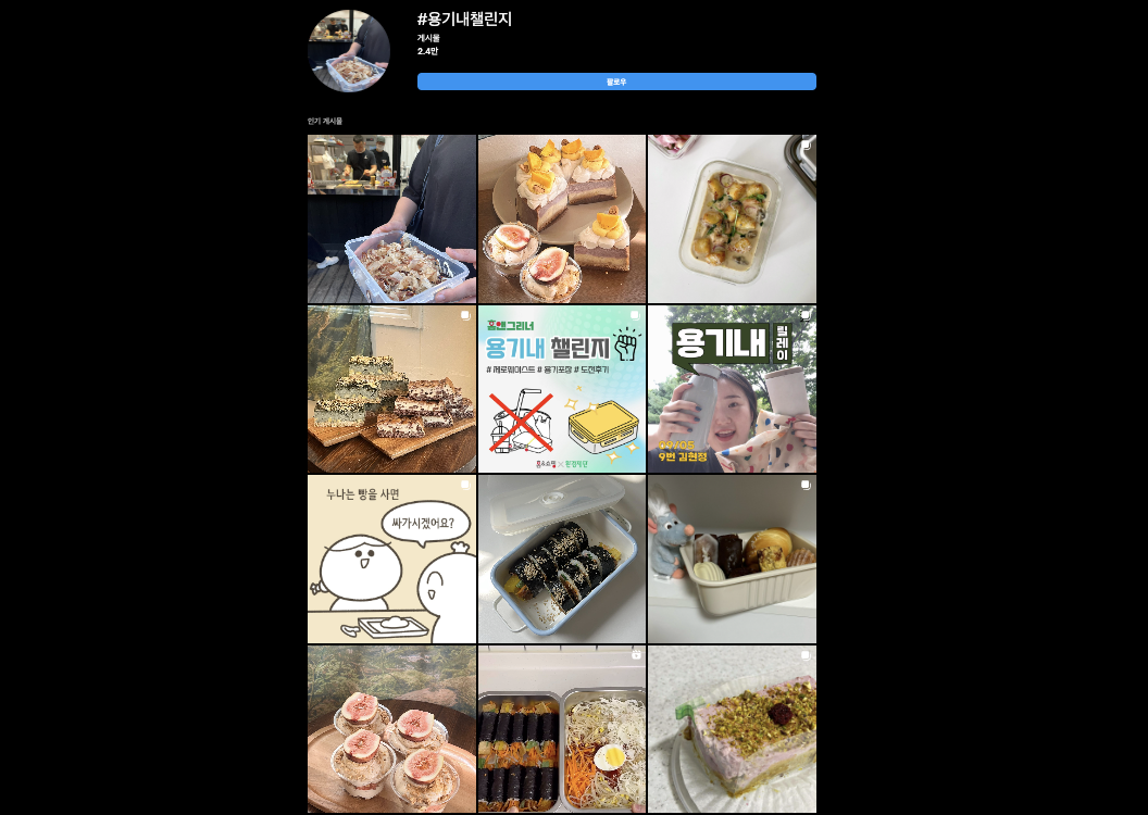 '용기내 챌린지' 는 음식 포장으로 인한 쓰레기를 줄이기 위해 에코백, 다회용기 등에 식재료나 음식을 포장해 오는 운동입니다. 어렵게만 느껴졌던 탄소중립 실천방안이 이렇게 대중적으로 발전될 수 있었던 이유는 바로 SNS의 발달이었습니다.