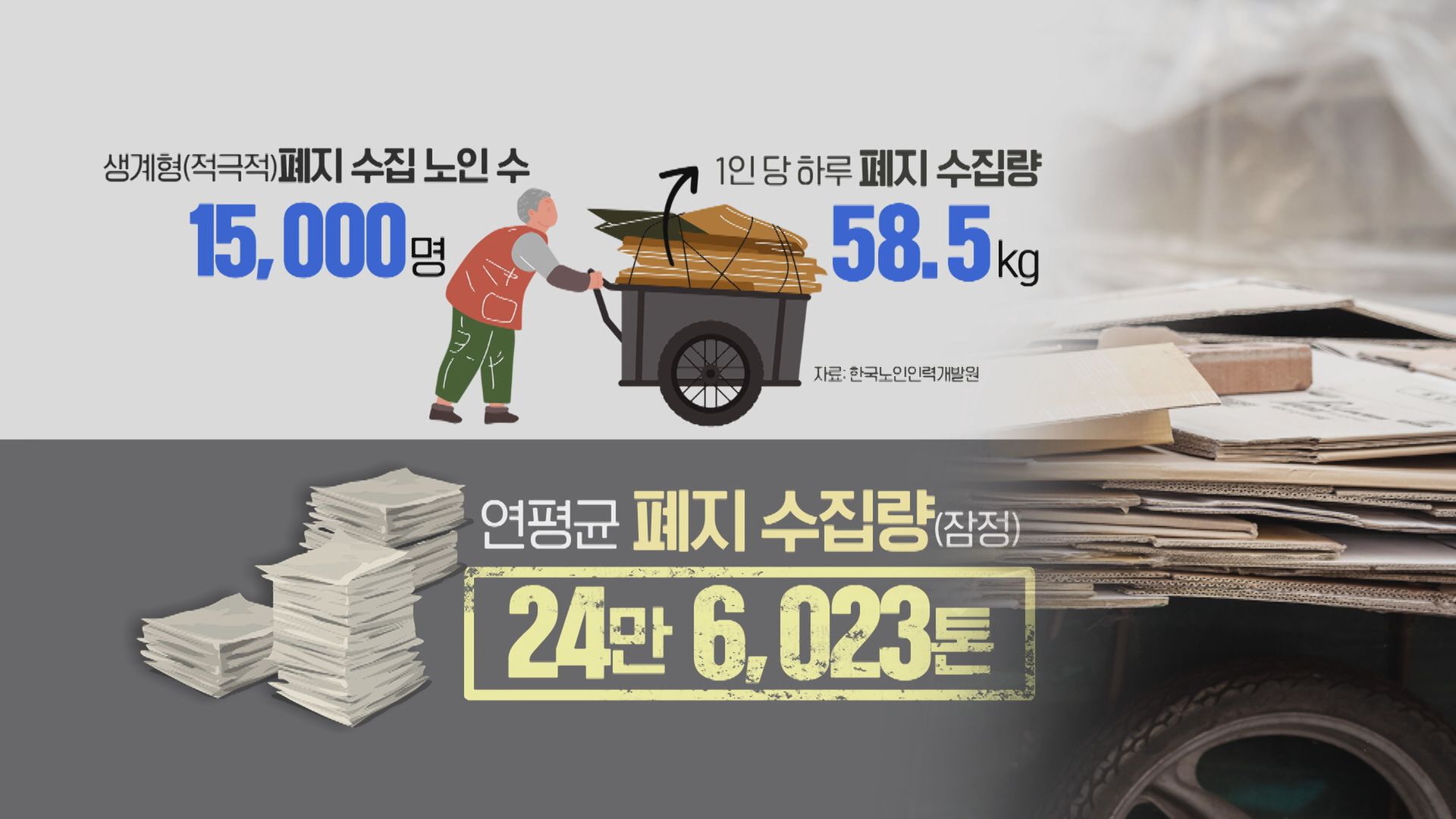 특히 이분들께서 주워 주시는 폐지는 도시에서 나오는 전체 폐지의 약 30%, 재활용되는 폐지의 60% 정도를 운반하고 있습니다.