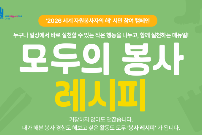- 「모두의 봉사 레시피 참여 안내」|2026 세계 자원봉사자의 해 시민 참여 캠페인 2026.03.27