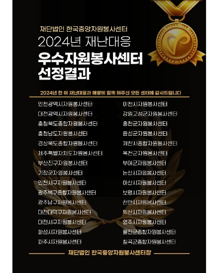 2024년 재난대응 우수자원봉사센터 선정 결과 안내