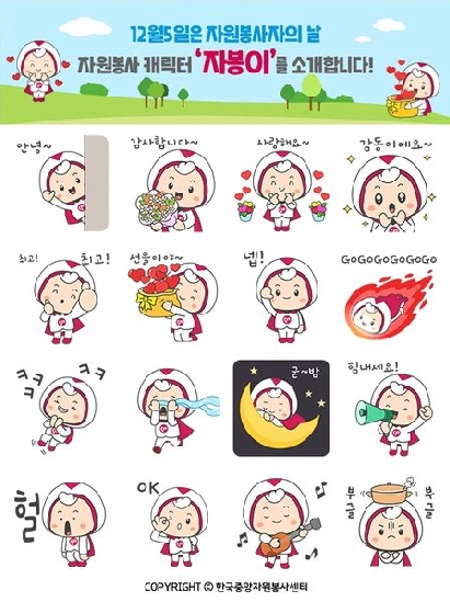 대한민국 자원봉사 캐릭터 '자봉이' 이모티콘 무료 배포 이벤트