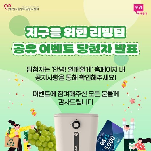 지구를 위한 리빙팁 공유 이벤트 당첨자를 발표합니다