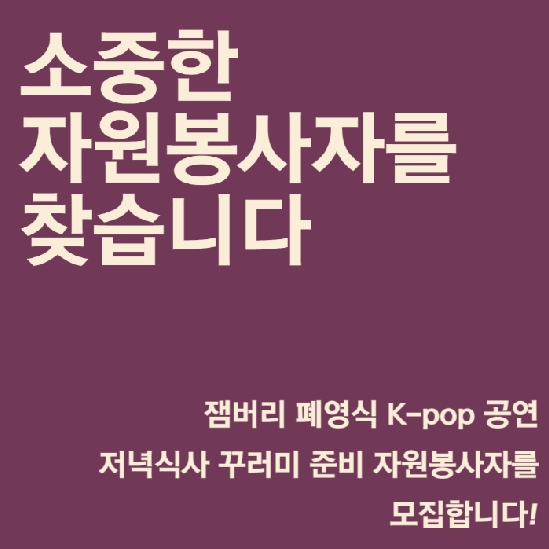 잼버리 폐영식 K-pop 공연 저녁식사 꾸러미 준비 자원봉사자를 모집합니다
