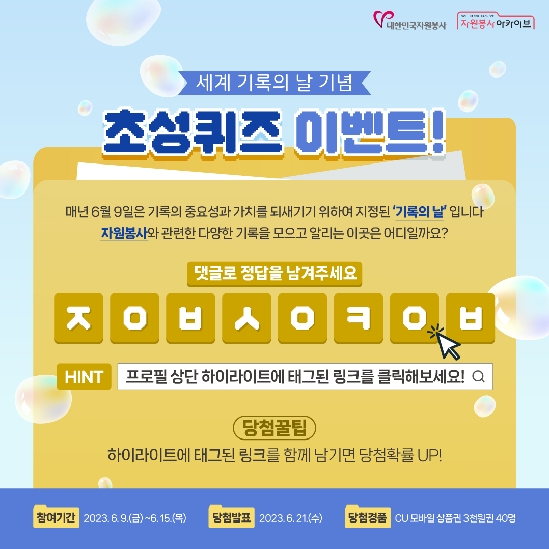 자원봉사 아카이브 초성퀴즈 이벤트