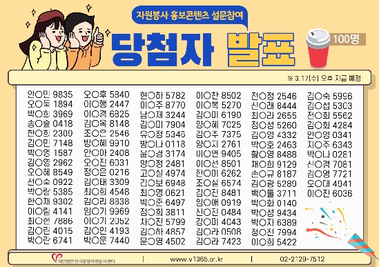 자원봉사 홍보콘텐츠 설문 참여 이벤트 당첨자 발표