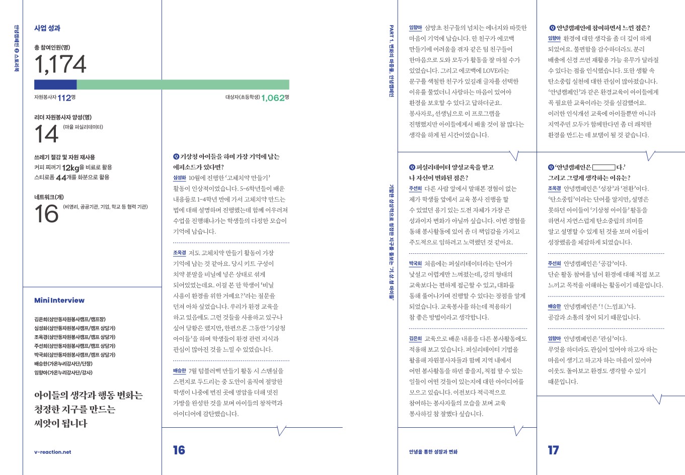 임팩트 스토리 [안녕캠페인] 기발한 상상력으로 청정한 지구를 돌보는 ‘기.상.청 아이들’ 관리자 2022.11.17 467 이전글 [안녕캠페인] 기후위기 대응 플랫폼, “안녕! 나의 마을” 목록 다음글 [안녕캠페인] '안녕! 초록 자전거길' 함께 만들어 가는 자전거 타기 좋은 마을 프로젝트
