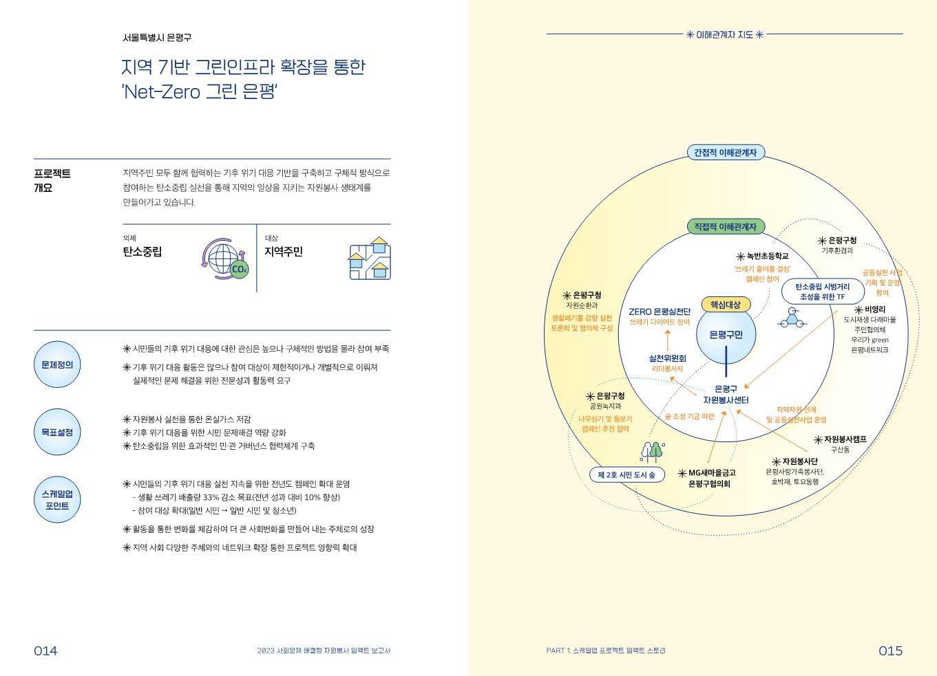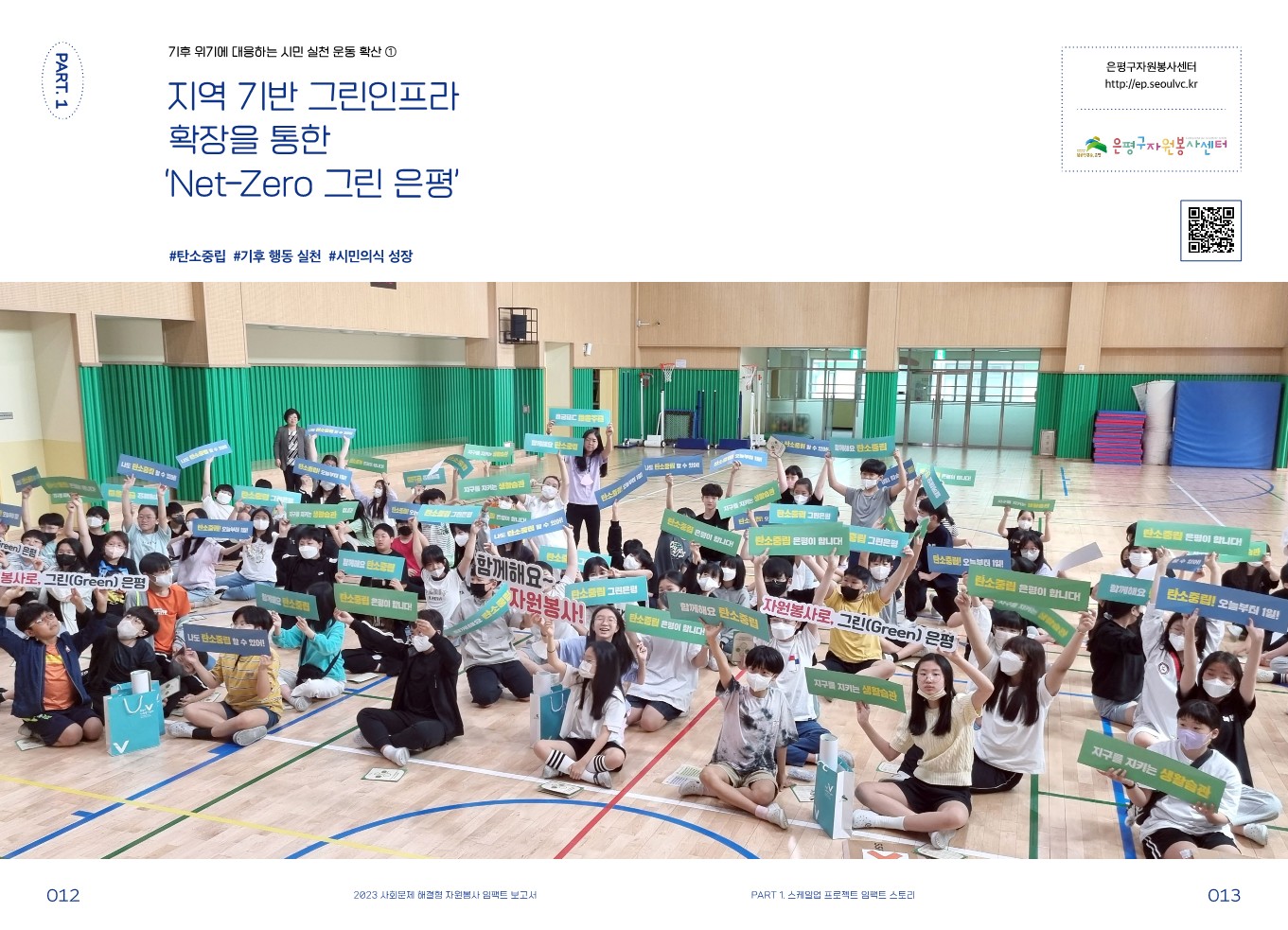 임팩트 스토리 [스케일업 프로젝트] 지역 기반 그린 인프라 확장을 통한 ‘Net-Zero 그린 은평’ 관리자 2024.02.08 399 이전글 [스케일업 프로젝트] 안녕, 대구! 시민이 안심하는 기후 위기 적응 도시 대구 만들기 목록 다음글 [안녕캠페인] 자원봉사 일감도출 리빙랩 ‘소도리공론장’ & ‘공.공.공프로젝트’