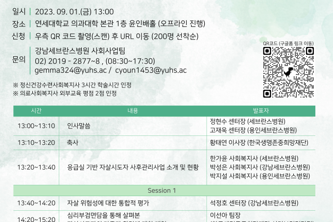 [홍보] 2023년 연세의료원 생명사랑위기대응센터 연합심포지엄 ‘생명(生命) 안내