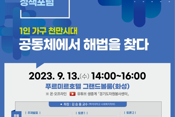 [홍보] 자원봉사 정책포럼 「1인 가구 천만시대, 공동체에서 해법을 찾다」 안내