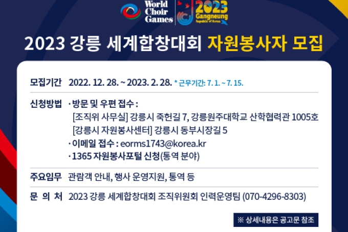 [모집] 2023 강릉 세계합창대회 자원봉사자 모집 공고