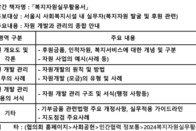 [홍보] 민간자원 개발과 관리를 위한 복지자원활용실무서 발간 안내