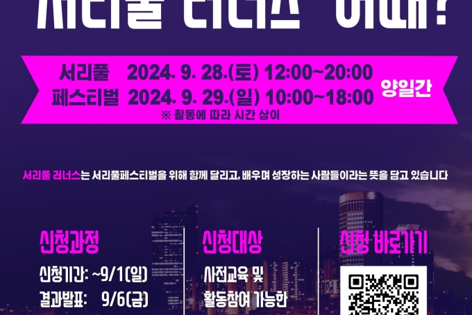[모집] 2024년 서리풀페스티벌 청년봉사단 ‘서리풀 러너스’ 모집