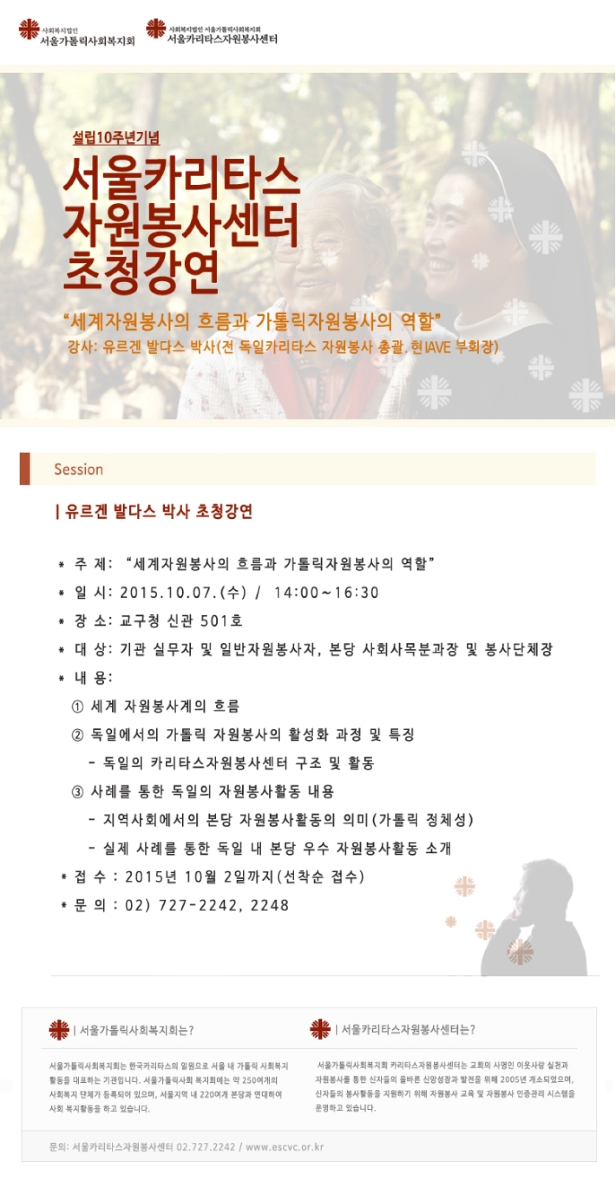 [안내] 서울카리타스 자원봉사센터 초청강연 안내