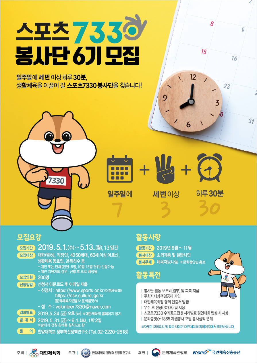 스포츠7330 봉사단 6기 모집