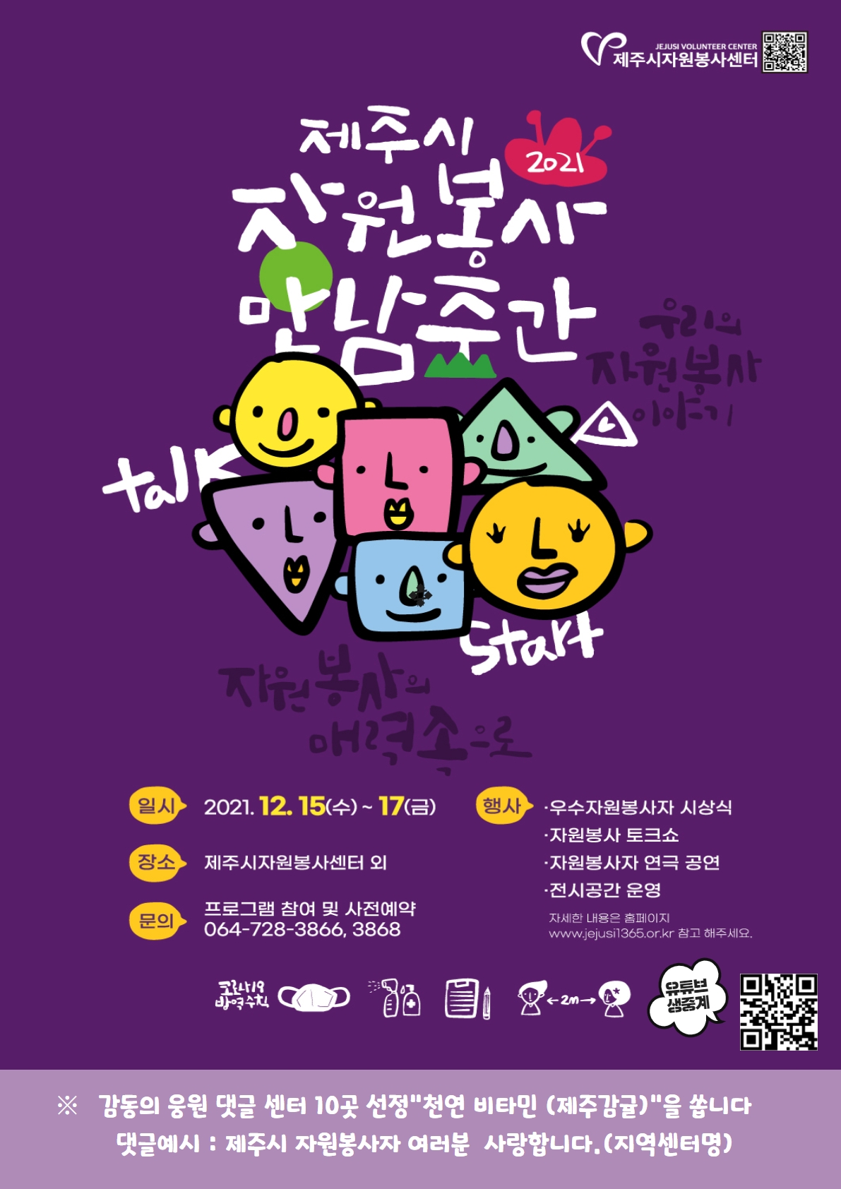 정보공유 [홍보] 「2021 제주시 자원봉사 만남 주간」 응원 댓글 참여 관리자 2021.12.14 1518 이전글 [홍보] 2021년 (사)한국자원봉사학회 후기 학술대회 참여 안내 목록 다음글 [홍보] 「2022강원세계산림엑스포」자원봉사자 모집