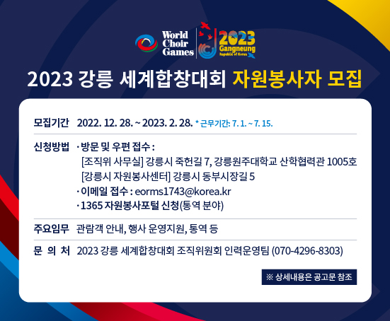 2023 강릉 세계합창대회 자원봉사자 모집 공고