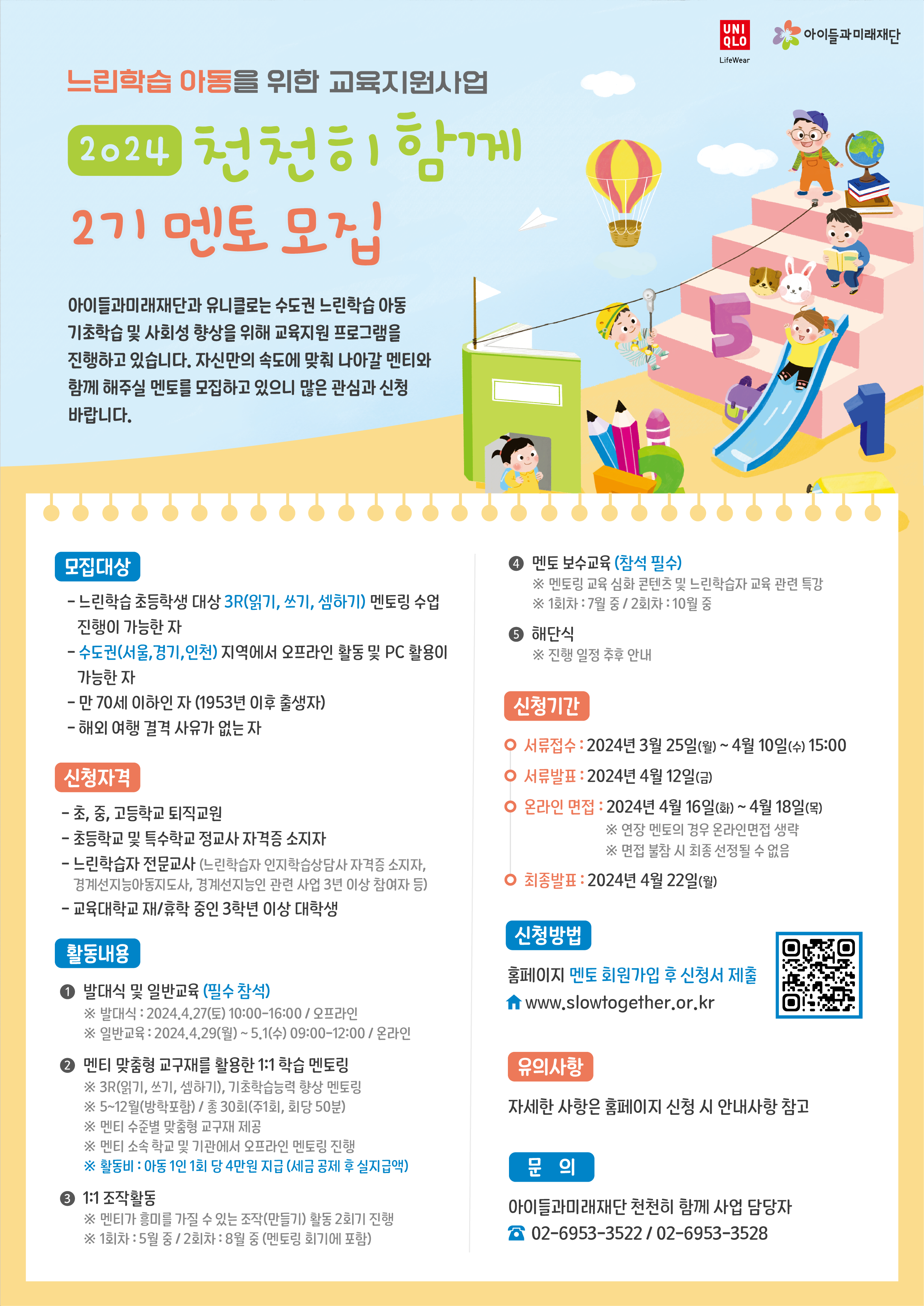 정보공유 [모집] 느린학습아동 교육지원사업 '천천히 함께' 참여 멘토 모집 관리자 2024.04.08 1233 이전글 [홍보] 자원봉사 정책포럼 「지방시대, 인구구조의 변화와 자원봉사계의 대응」 안내 목록 다음글 [홍보] 청소년 장학사업 <유스 그린리더 3기>
