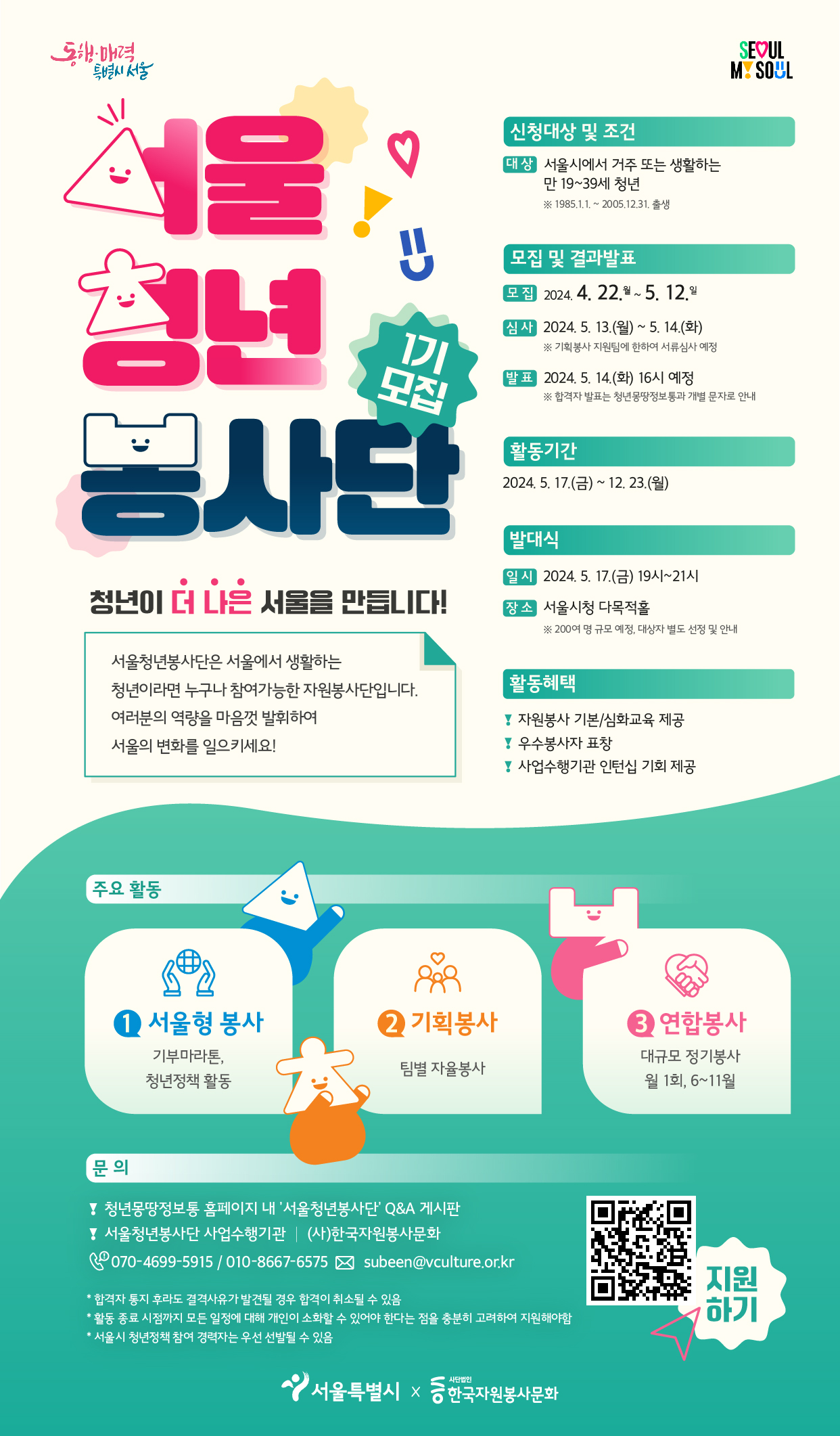 [모집] 한국자원봉사문화 2024년 서울청년봉사단 1기 모집