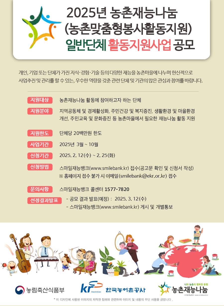 (일반단체&지역단체)2025년 농촌재능나눔(농촌맞춤형 봉사활동지원) 단체 활동지원사업 공모