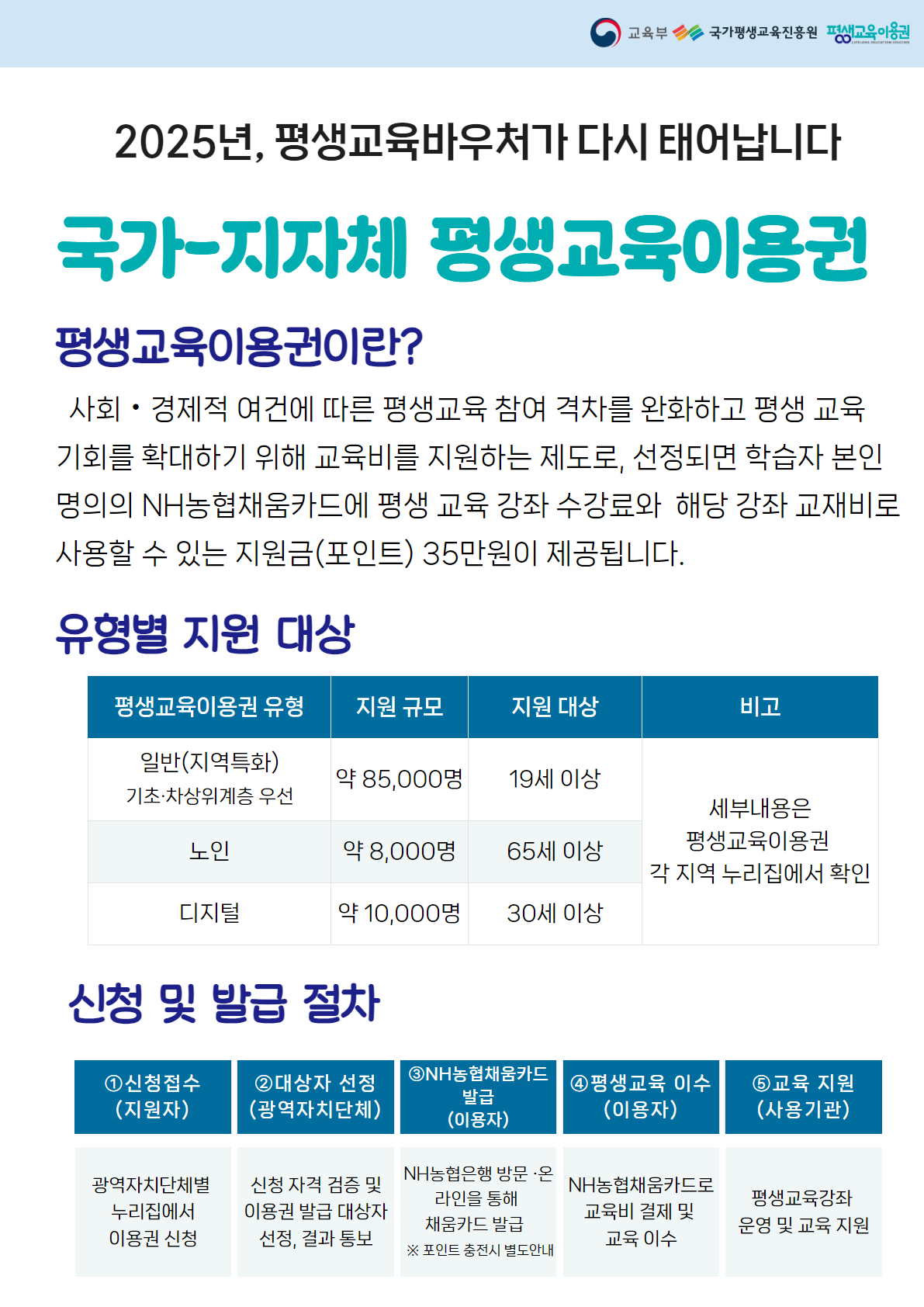 [홍보] 2025년 평생교육이용권 지원사업 안내