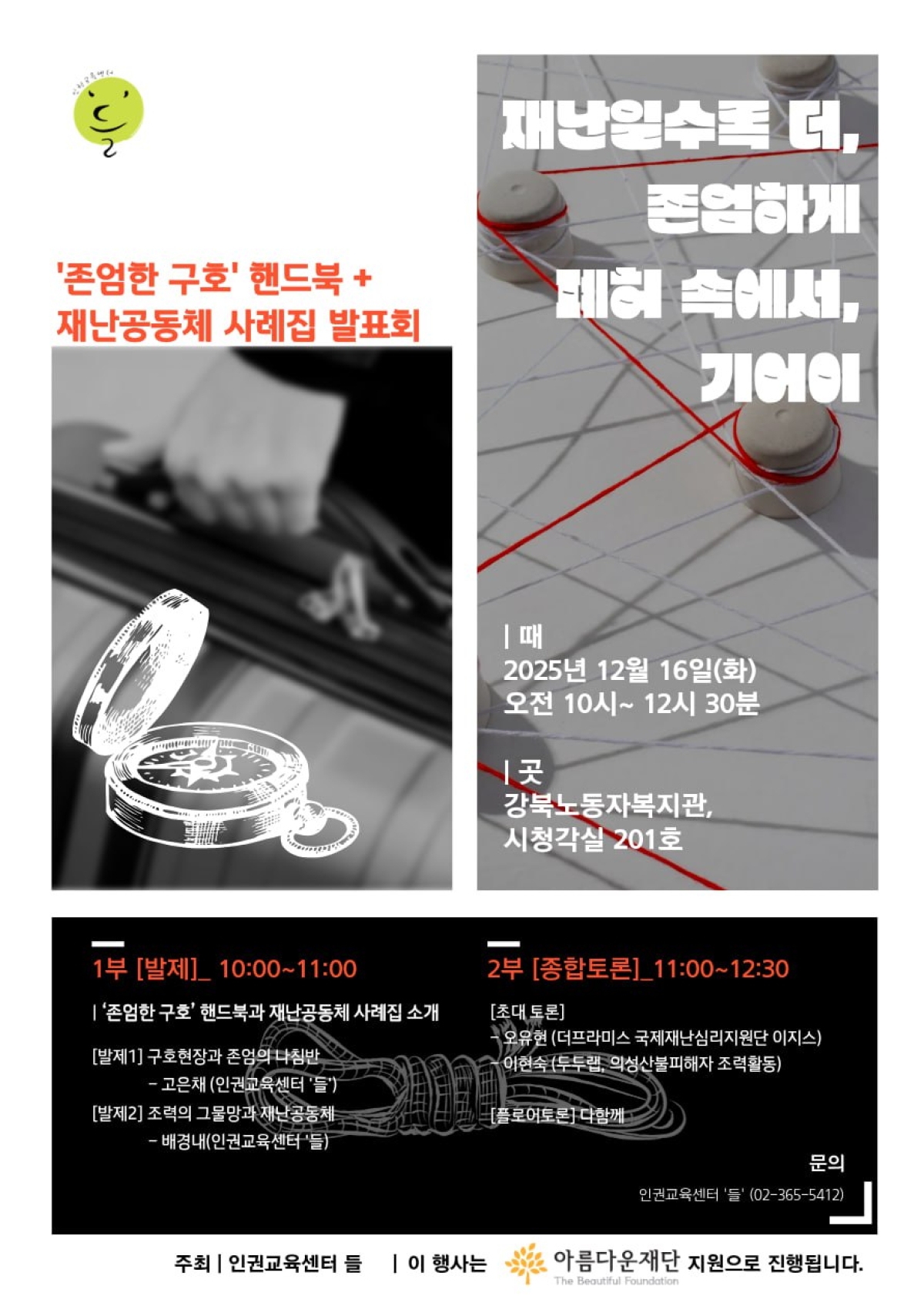 [홍보] '존엄한 구호' 핸드북 재난공동체 사례집 발표회 참가 신청 안내