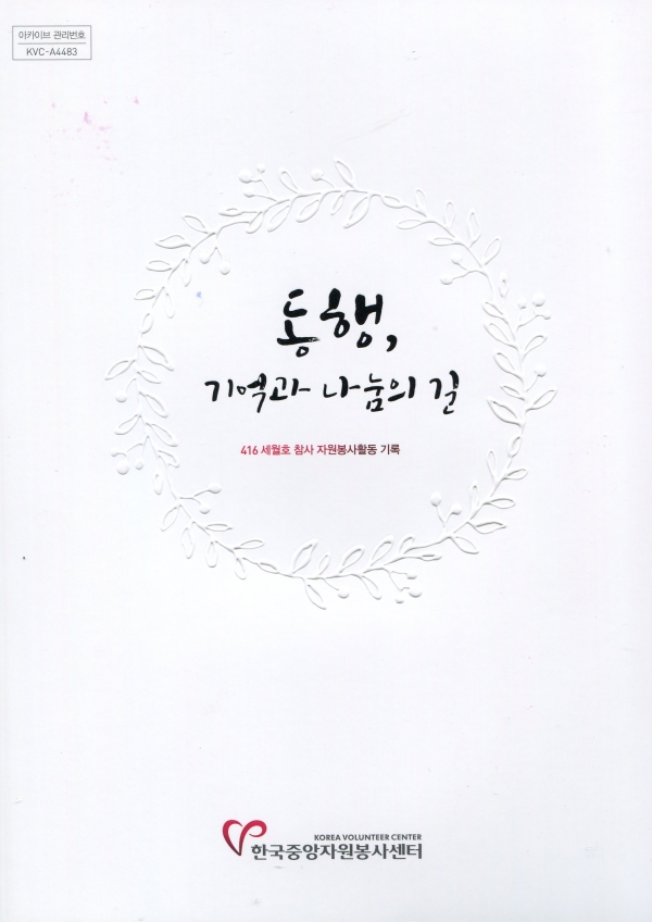 한국중앙자원봉사센터가 참사의 슬픔에 공감하는 많은 사람들이 자원봉사자로 참여한 사실을 기록하려는 취지에서 ‘4·16 세월호 참사 자원봉사활동 기록-동행, 기억과 나눔의 길’이란 책자를 펴냈다.