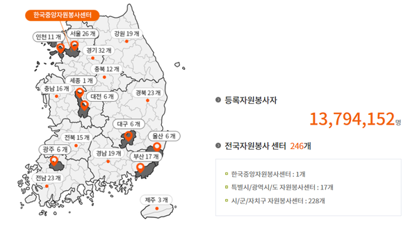 ▲자원봉사 인프라 ⓒ1365자원봉사포털