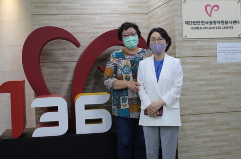 대응방안 등을 함께 논의한 국립암센터 기모란 교수(우측)와 권미영 센터장이 기념촬영을 하고 있다. 사진=한국중앙자원봉사센터