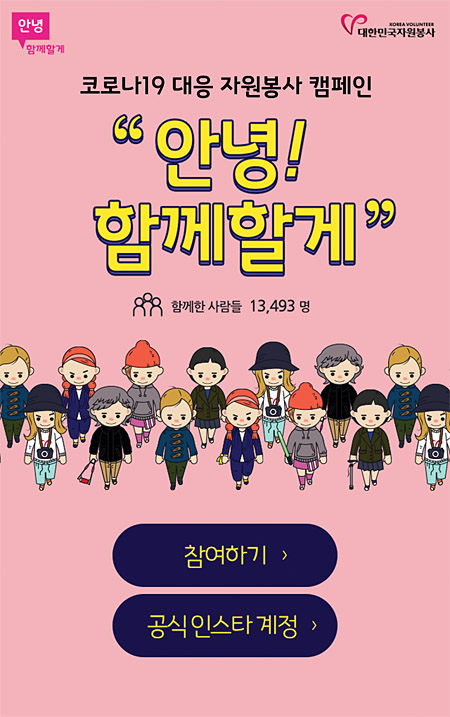 ▲ 코로나19 대응 자원봉사 캠페인 '안녕! 함께할게' 공식 홈페이지 참여화면.