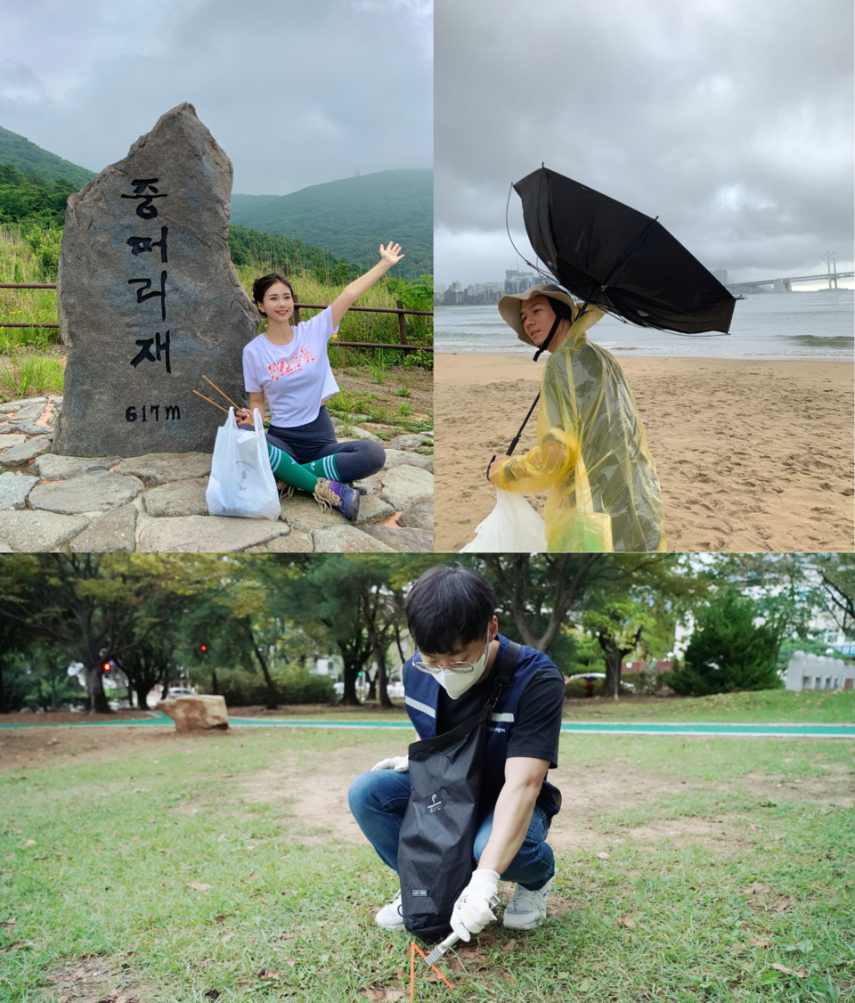 ▲ '2022 범국민 플로깅 캠페인'에 참여한 (시계 방향으로) 김가연 씨, 최상규 씨, 유현석 씨. 본인 제공.
