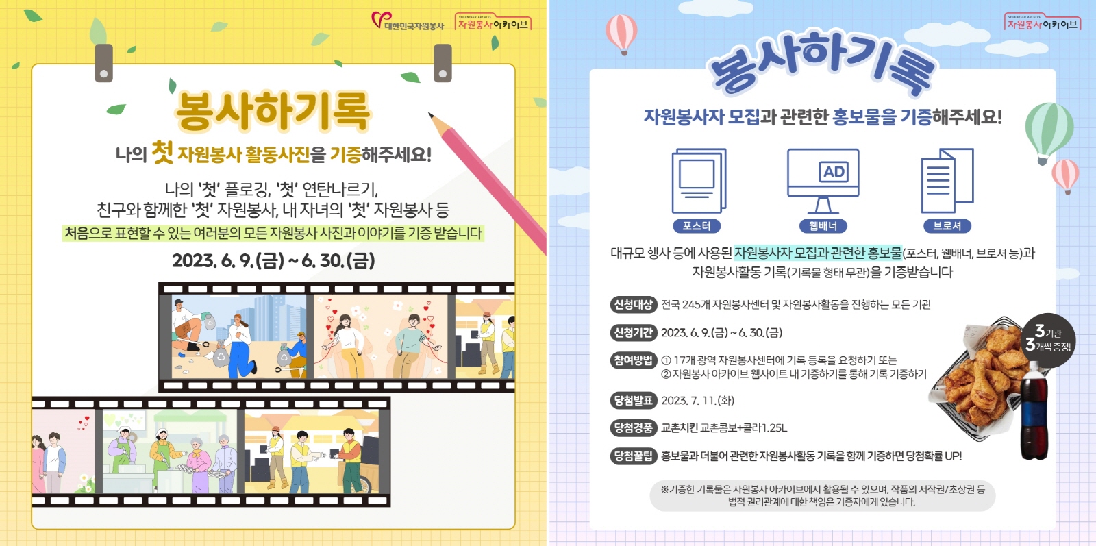 - 전국민 대상 자원봉사 아카이브 기록주간 이벤트 6월 30일까지 진행